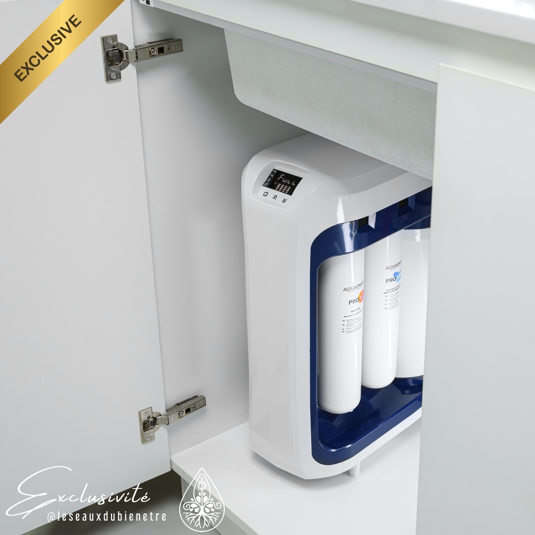 Notre unité est un système de filtration par osmose inverse et une reminéralisation naturelle exclusive le plus intelligent et entièrement automatique.